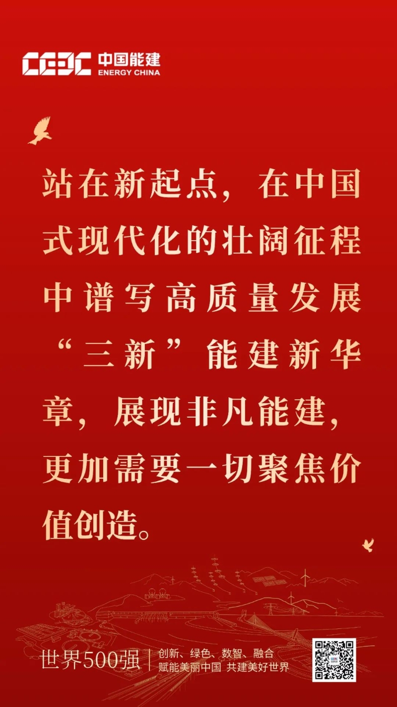 大風(fēng)泱泱,大潮滂滂,一幅恢宏的畫卷正在鋪展,一曲激昂的戰(zhàn)歌正在奏起,一次偉大的遠(yuǎn)征已經(jīng)開始,一個(gè)嶄新的“三新”能建正呼之欲出。讓我們更加緊密地團(tuán)結(jié)在以習(xí)近平同志為核心的黨中央周圍,在大勢(shì)中定向,在大局中定位,在大考中定力,在全力為國(guó)家重點(diǎn)戰(zhàn)略和能源安全提供堅(jiān)強(qiáng)保障的征程中,不斷開創(chuàng)建設(shè)高質(zhì)量發(fā)展“三新”能建的嶄新局面,為全面推進(jìn)中國(guó)式現(xiàn)代化強(qiáng)國(guó)建設(shè)、民族復(fù)興偉業(yè)作出新的更大貢獻(xiàn)。