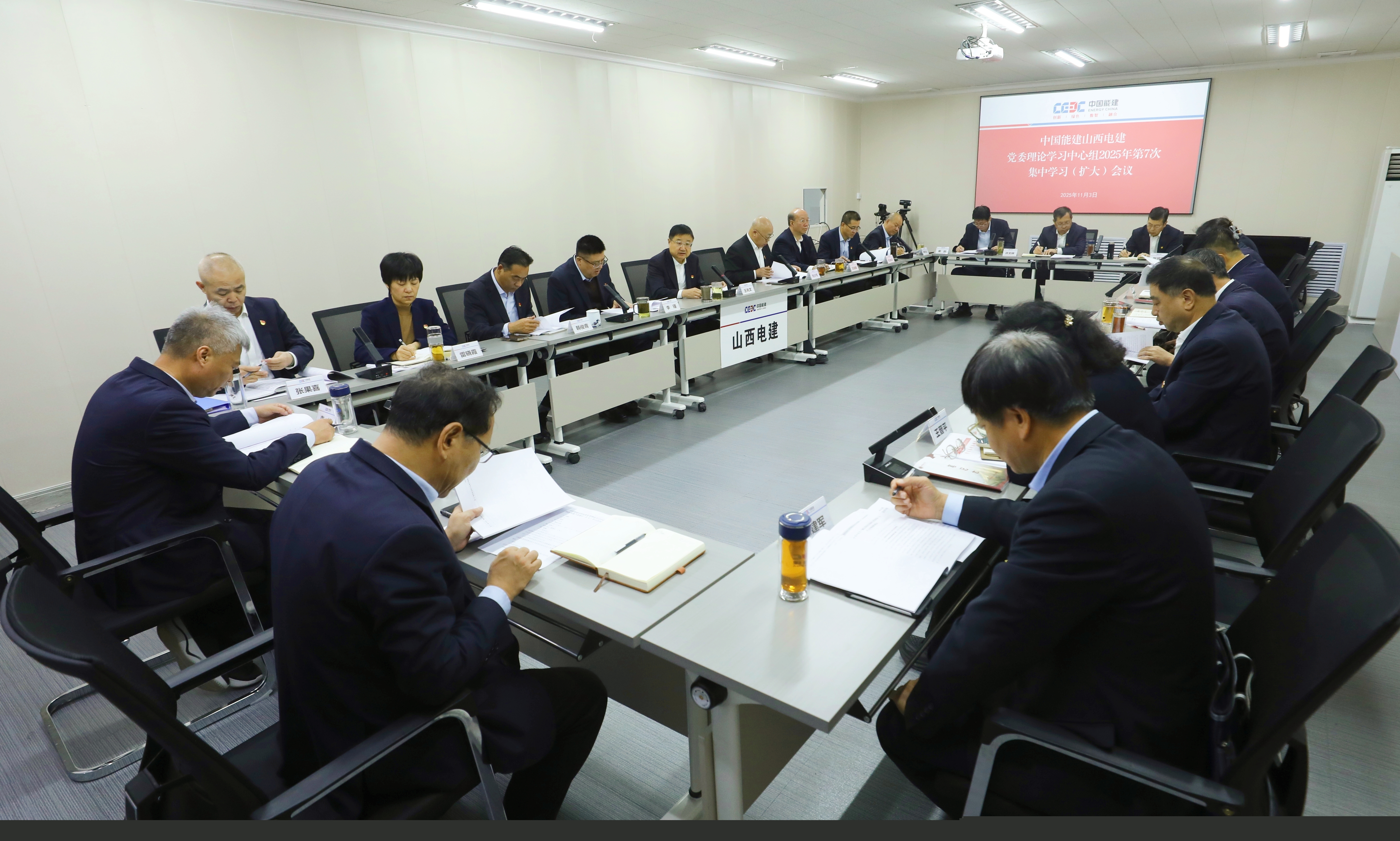 news11月3日,中國能建山西電建黨委舉辦2025年第七次黨委中心組(擴大)學習會,專題傳達學習黨的二十屆四中全會精神,并進行交流研討,研究部署學習宣貫工作。
