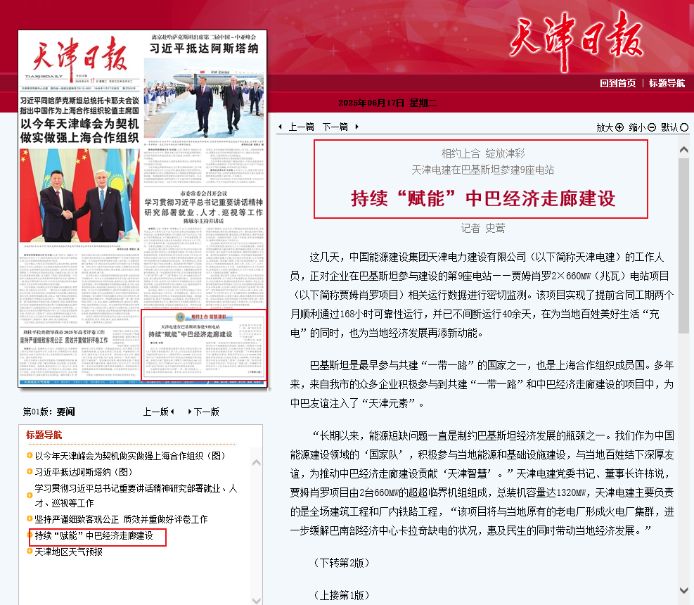 創(chuàng)新土建關(guān)鍵工藝、優(yōu)化設計方案、攻克施工難關(guān)……天津電建不僅為賈姆肖羅項目的順利推進與高質(zhì)量完成發(fā)揮關(guān)鍵作用,更為中巴兩國的能源合作與友誼搭建更堅實的橋梁。許棟表示:“我們將立足傳統(tǒng)電力、新能源和非電領(lǐng)域核心優(yōu)勢,緊抓全球能源轉(zhuǎn)型、產(chǎn)業(yè)升級及‘一帶一路’高質(zhì)量發(fā)展機遇,持續(xù)拓展海外特別是上合組織國家等市場,形成布局優(yōu)化、模式升級、資源整合與綠色賦能相結(jié)合的國際化發(fā)展路徑,為推動務實合作、構(gòu)建更加緊密的上合組織命運共同體貢獻駐津央企力量。”