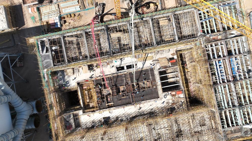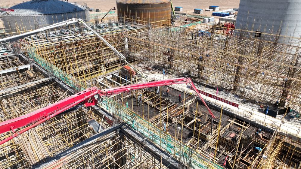 記者采訪獲悉,該項目由中國能源建設集團投資有限公司投資建設,于2024年5月開工,計劃2027年6月完工。本次澆筑的汽輪機基礎是光熱電站核心結構,投運后需承載數千噸設備重量及高頻振動荷載。本次澆筑混凝土方量600立方米,屬于大體積混凝土澆筑,基礎需嵌入大量預埋件、螺栓孔,施工精度直接影響設備安裝定位,施工已于7月16日完成。項目地處哈密市巴里坤哈薩克自治縣的一處戈壁上,建設環境惡劣,氣候變化大,交通不便,生產生活物資供給困難,年施工窗口期僅7個月。經過克服風沙侵襲、嚴寒酷暑等多重考驗,歷時數月的精細籌備,目前施工正按計劃穩步推進,整體工程有序鋪開。